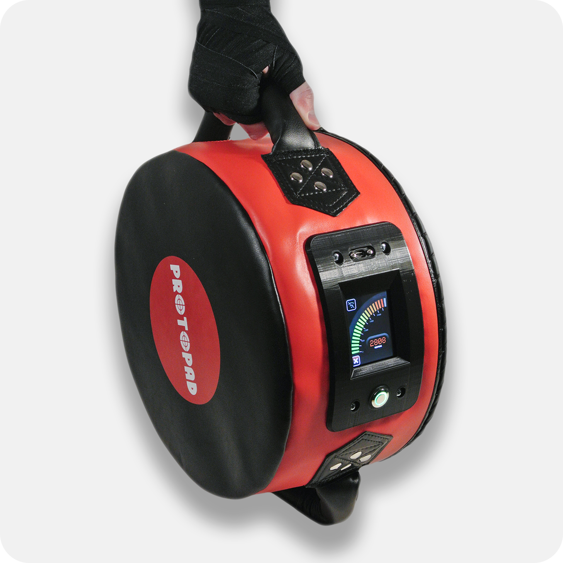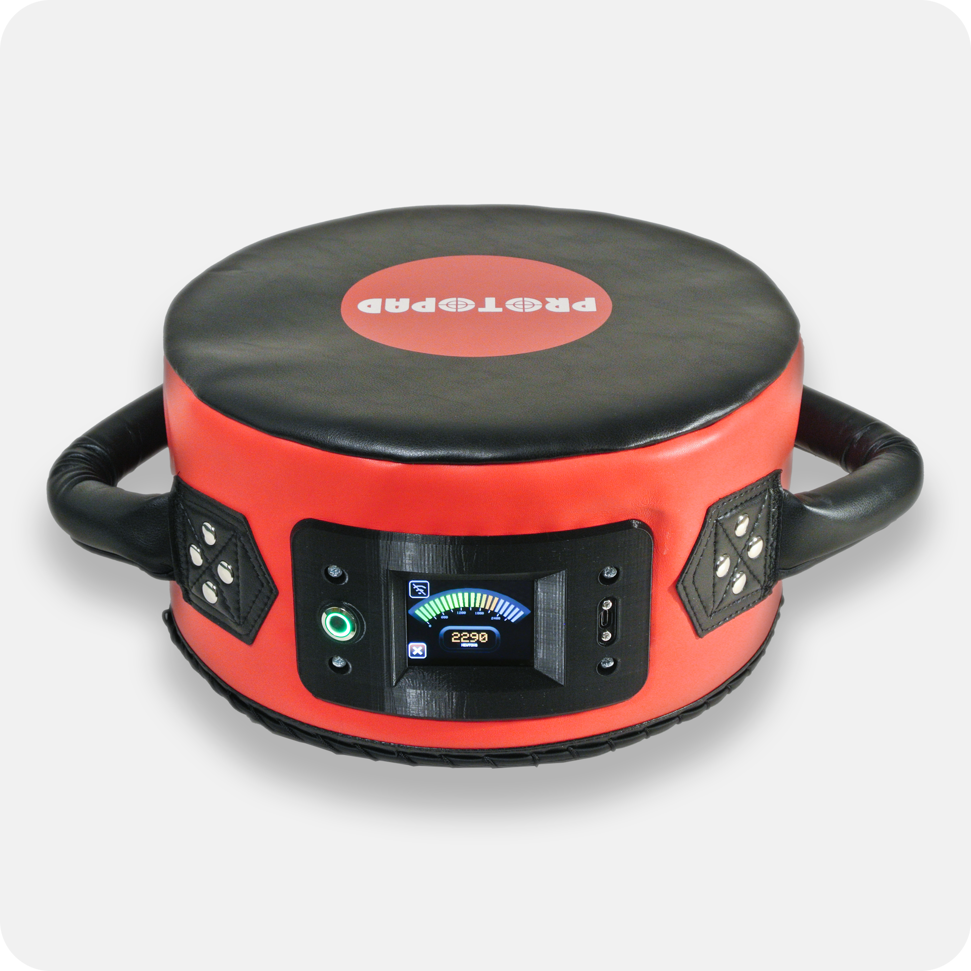 PROTOPAD is a portable punch pad built to measure the impact force of a punch. Each pad is tested and calibrated for accurate readings in Newtons, with a force capacity up to 6000N. Features also include WiFi connectivity, allowing uploads to a live global leaderboard and an on-screen battery fuel gauge.